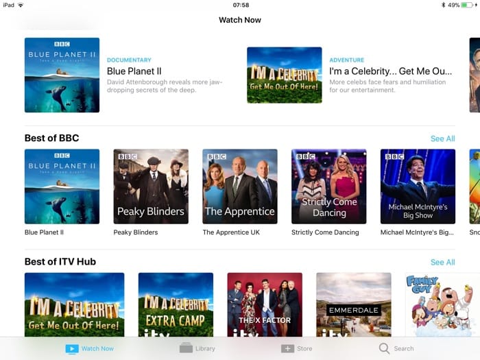 To watch itv on your apple tv you need to go into the app store itv apple. The apple tv app already enables users to search across a range of streaming services, including amazon prime video, bbc iplayer, itv hub and apple's own tv+ service.